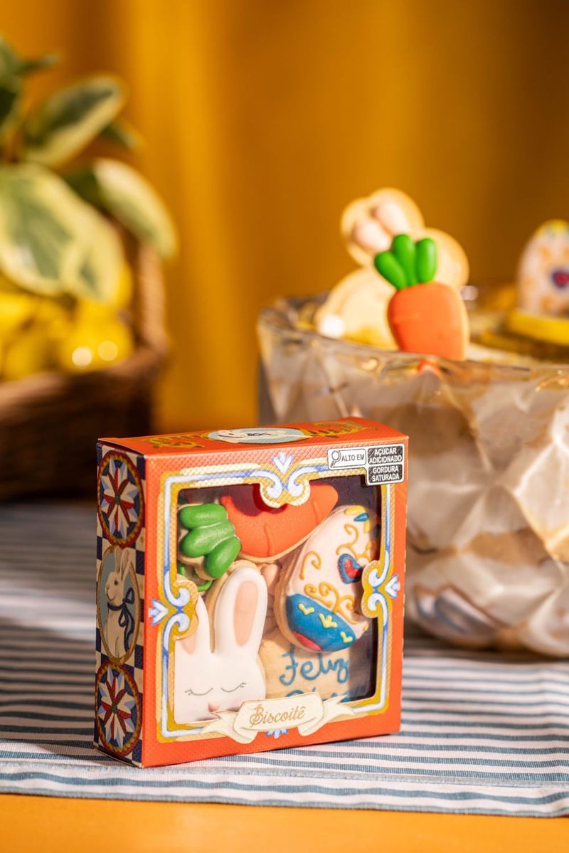 Um toque de doçura e arte para a sua Páscoa! Os Decoradinhos de Páscoa são biscoitos amanteigados de baunilha delicadamente decorados com glacê colorido, trazendo formatos e detalhes encantadores. Perfeitos para presentear ou deixar a sua mesa ainda mais especial e cheia de charme!