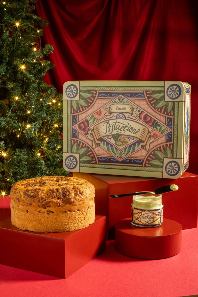 Panetone com toque de limão siciliano e crosta de castanhas. Acompanha espátula especial e pasta de pistache para vc rechear do seu jeito.