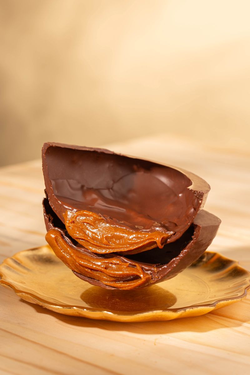Um sabor cheio de personalidade para a sua Páscoa! O chocolate com pedaços de biscoito é recheado com o irresistível doce de leite com especiarias. Uma experiência única que une o toque doce e levemente picante da canela com a textura perfeita.